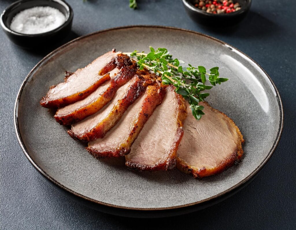 自然の恵みをたっぷり受けた豚肉をゆっくりじっくり低温で焼き上げました。